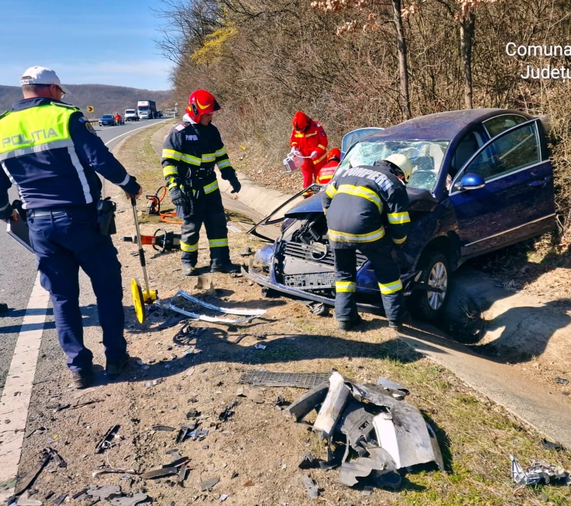 Două persoane au rămas încarcerate în urma unui accident rutier produs astăzi, pe DN 76, localitatea Târnava de Criș.