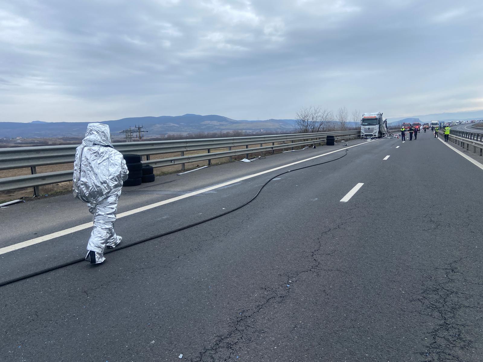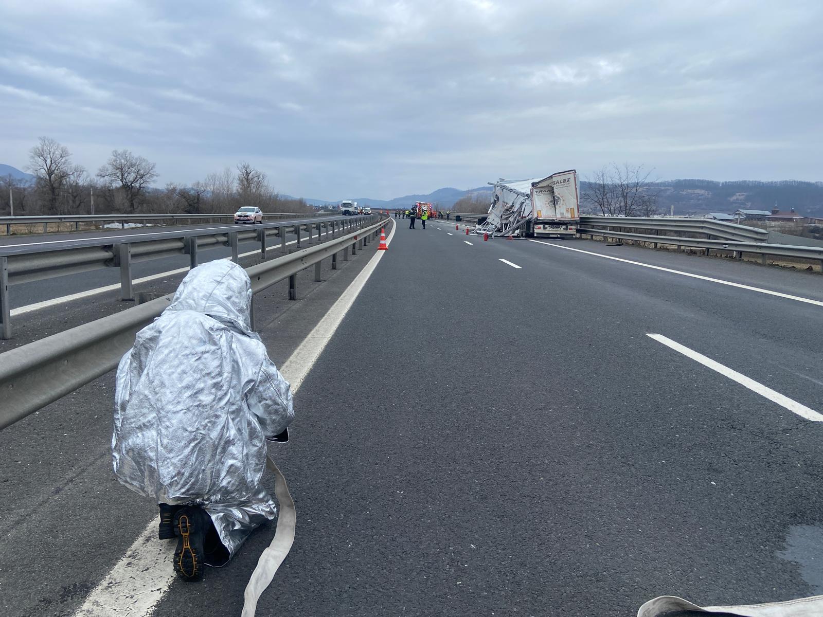Pentru protejarea participanților la trafic, pompierii au instituit imediat un perimetru de siguranță de minimum 300 de metri, au restricționat circulația și au realizat două dispozitive de protecție. Totodată, a fost anunțată Garda de Mediu, iar autoritățile analizează soluții alternative pentru preluarea și transportul în siguranță a încărcăturii afectate.