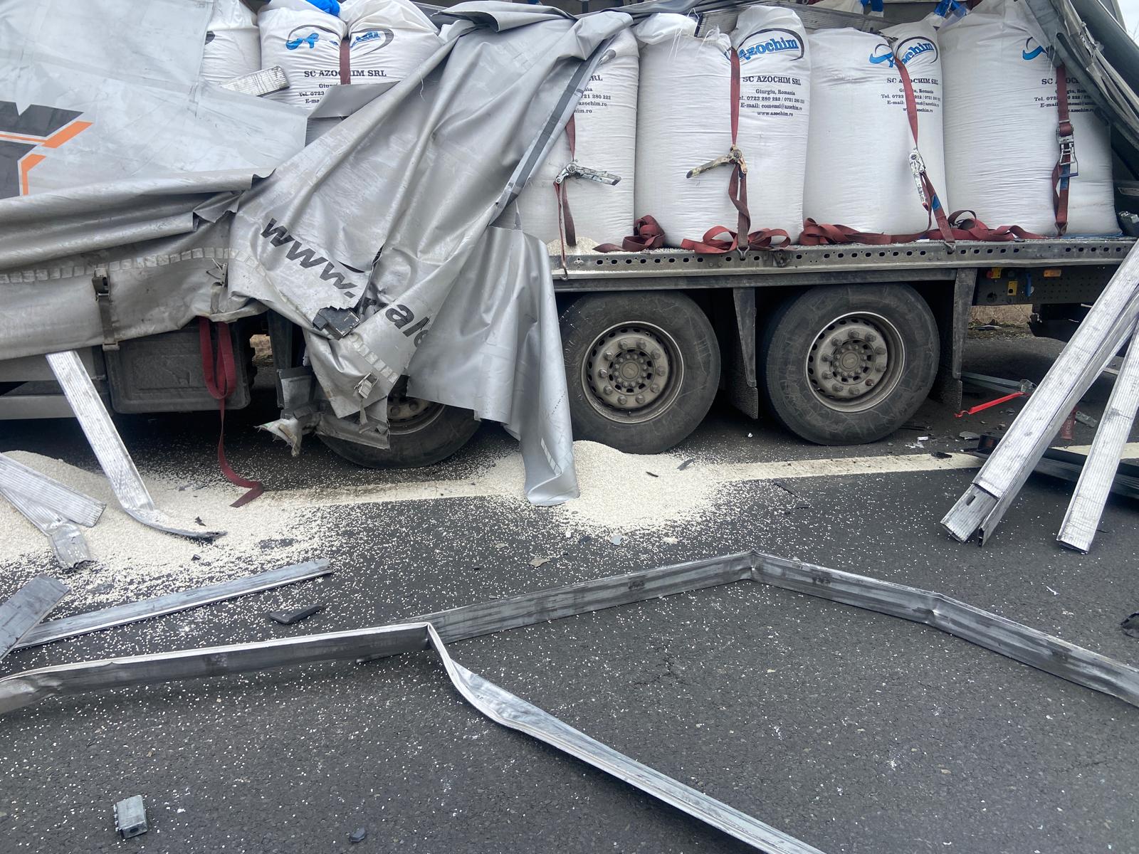 Evenimentul rutier a implicat două autocamioane, iar unul dintre ele transporta aproximativ 23 de tone de sulfat de amoniu. În urma coliziunii, mai mulți saci în care se afla sulfatul s-au deteriorat, iar o parte din încărcătură a ajuns pe carosabil.