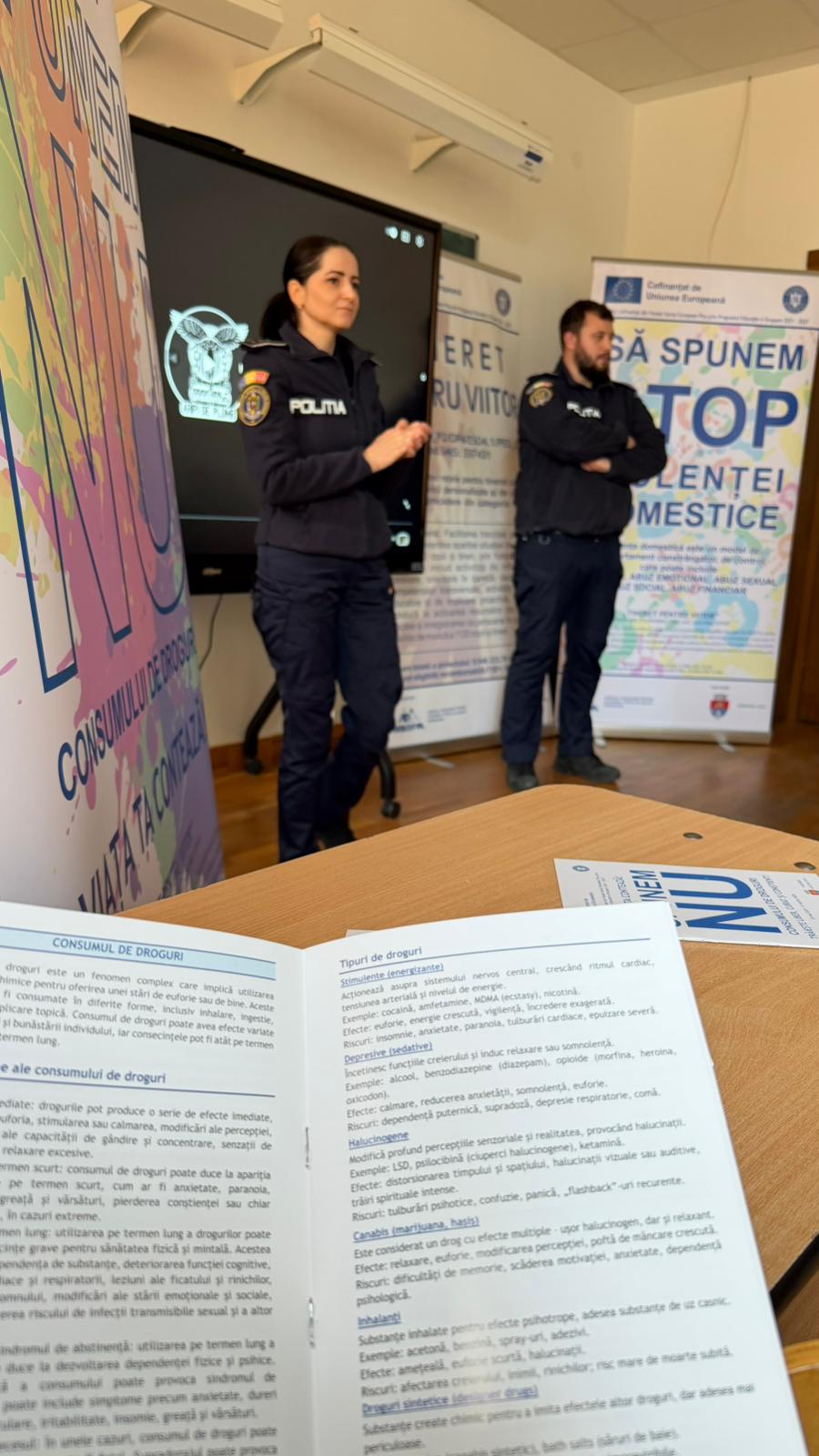 În cadrul întâlnirii, elevii au primit informații esențiale despre riscurile reale ale consumului de droguri și consecințele acestora asupra sănătății și parcursului lor de viață. De asemenea, au fost distribuite materiale informative și broșuri dedicate prevenirii consumului de substanțe interzise, iar participanții au fost implicați în activități interactive menite să îi ajute să recunoască situațiile de risc și să adopte decizii responsabile.