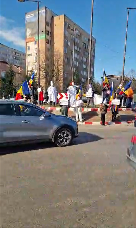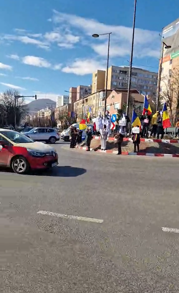 Un protest organizat de AUR Hunedoara a avut loc joi, 12 februarie, în municipiul Deva, însă manifestația a început într-o zonă neavizată de autorități. Mai mulți participanți s-au așezat în mijlocul sensului giratoriu din zona gării din localitate, un spațiu cu vizibilitate maximă, dar intens circulat, ceea ce a generat riscuri pentru siguranța atât a protestatarilor, cât și a șoferilor.