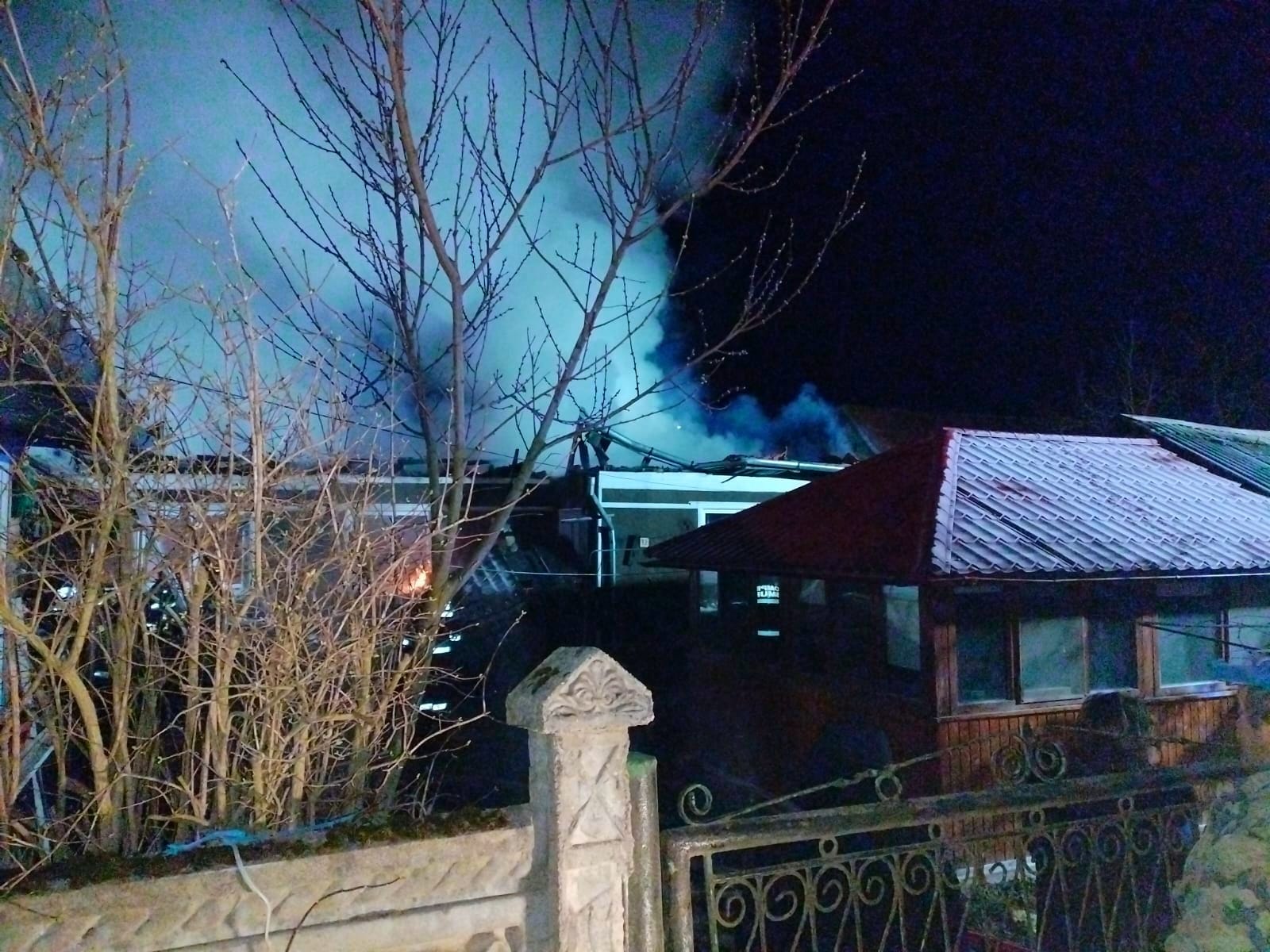 „Pompierii au localizat și au lichidat focul, care s-a manifestat pe aproximativ 100 de metri pătrați, reușind să protejeze o parte a locuinței.
