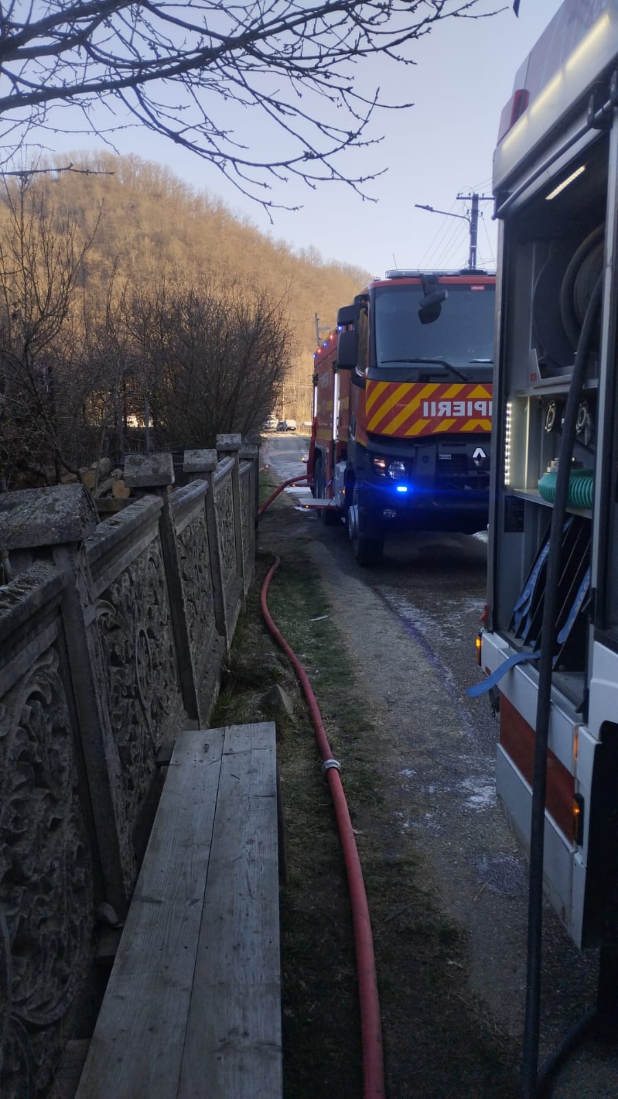 Pentru misiune au fost alocate două autospecialele de stingere cu apă și spumă, un autocamion și o ambulanță SMURD.