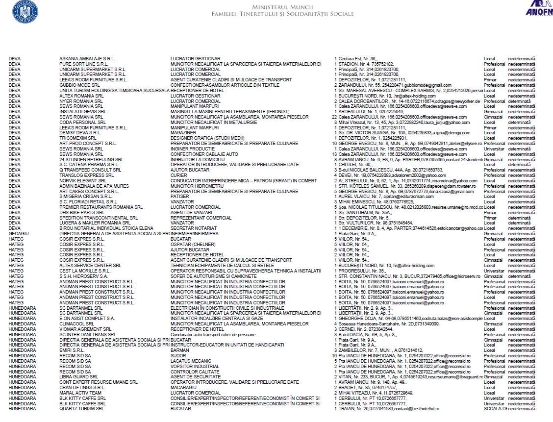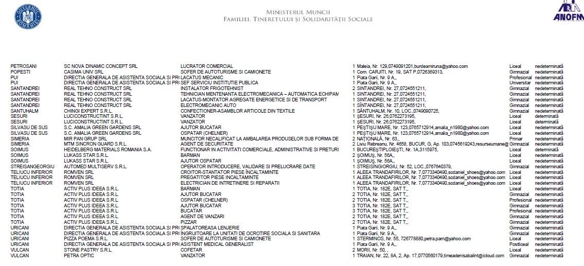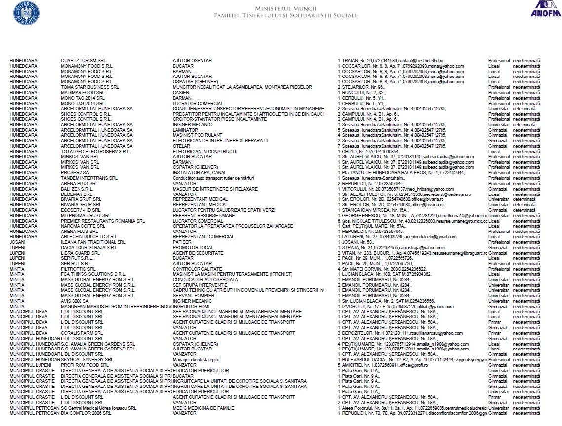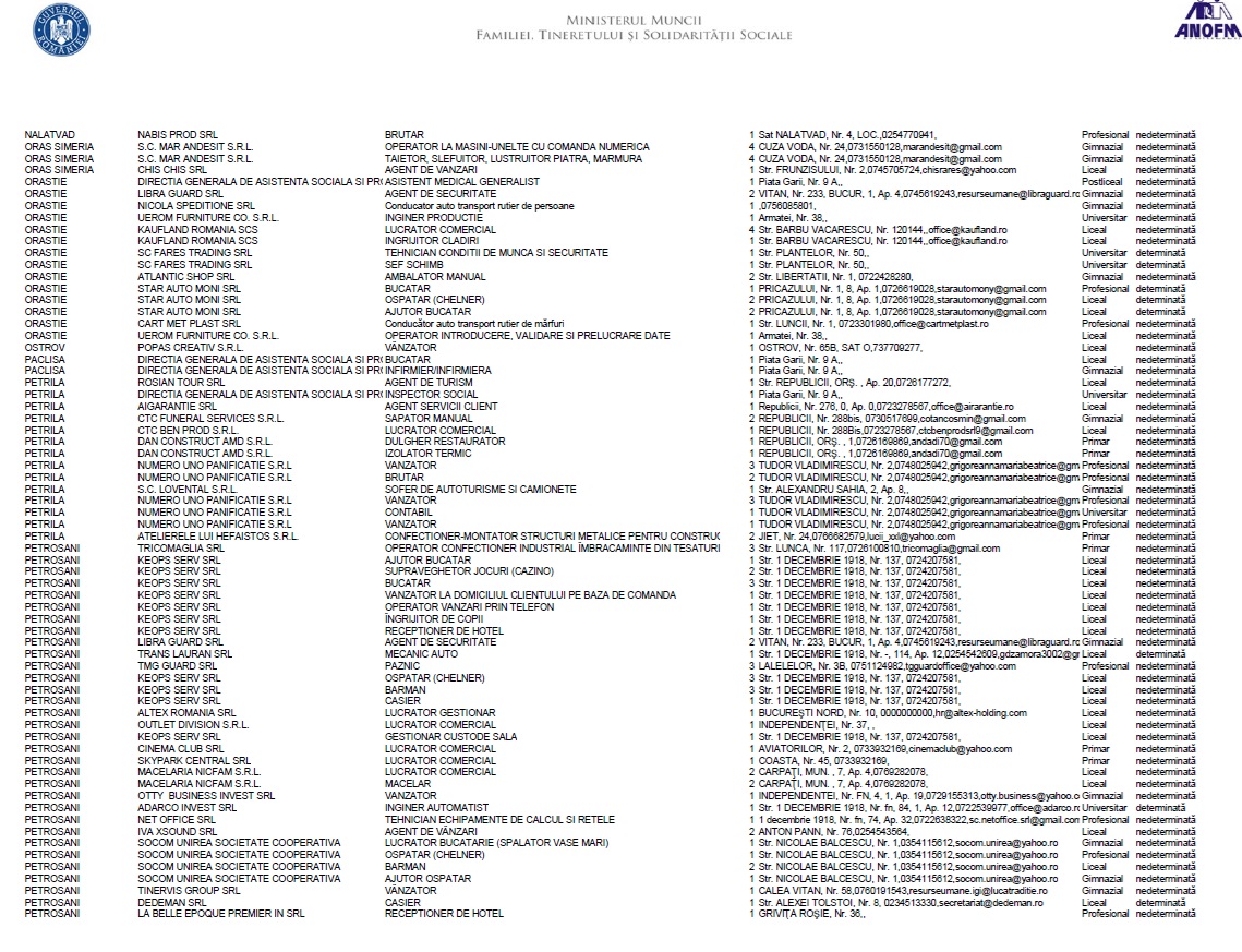 Iată, mai jos, lista completă a locurilor de muncă pentru care se caută angajați.