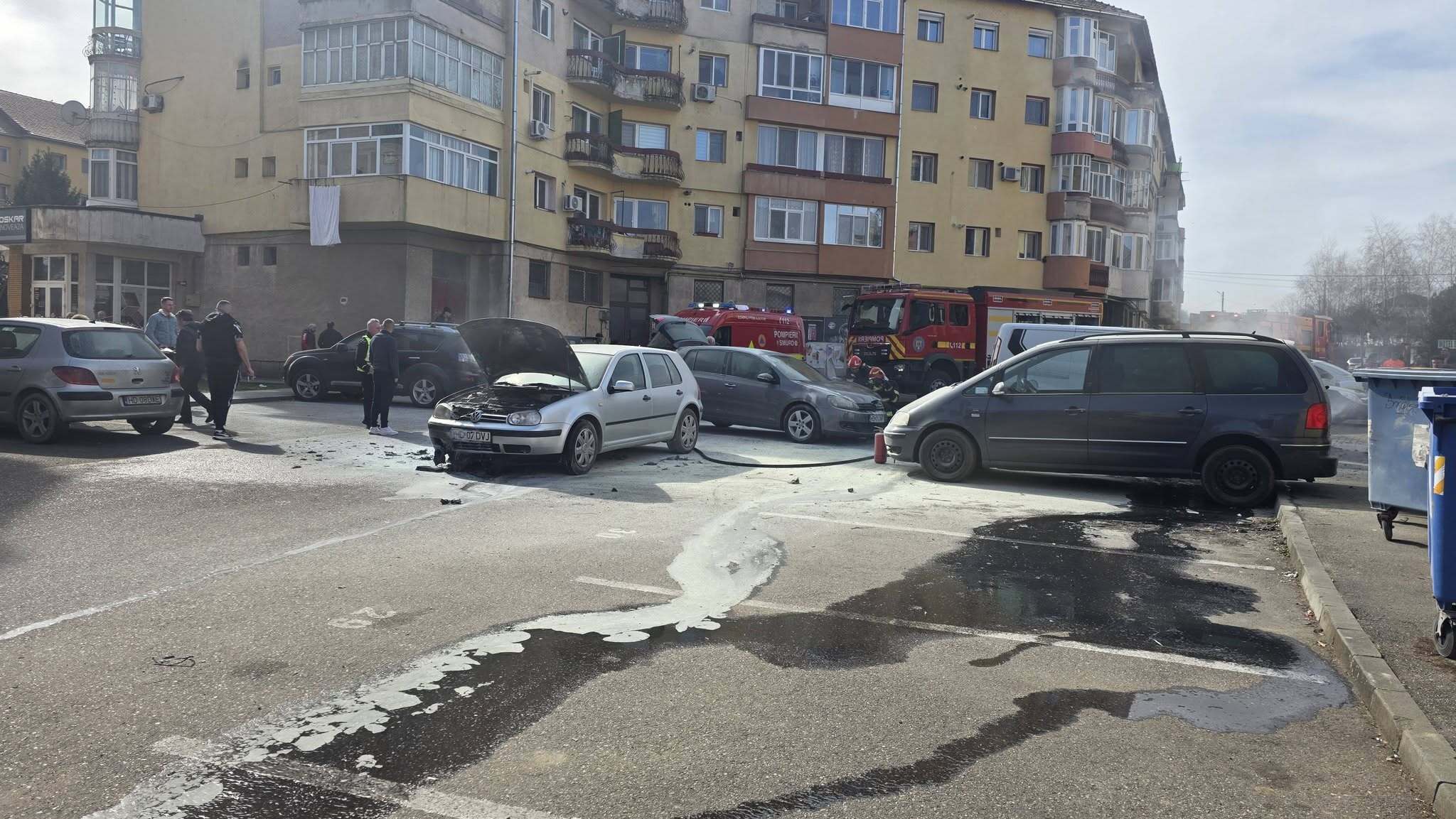 Trei autovehicule au fost avariate, în această după-amiază, într-o parcare din municipiul Orăștie, după ce un incendiu izbucnit de la un autoturism s-a extins rapid la alte două vehicule.