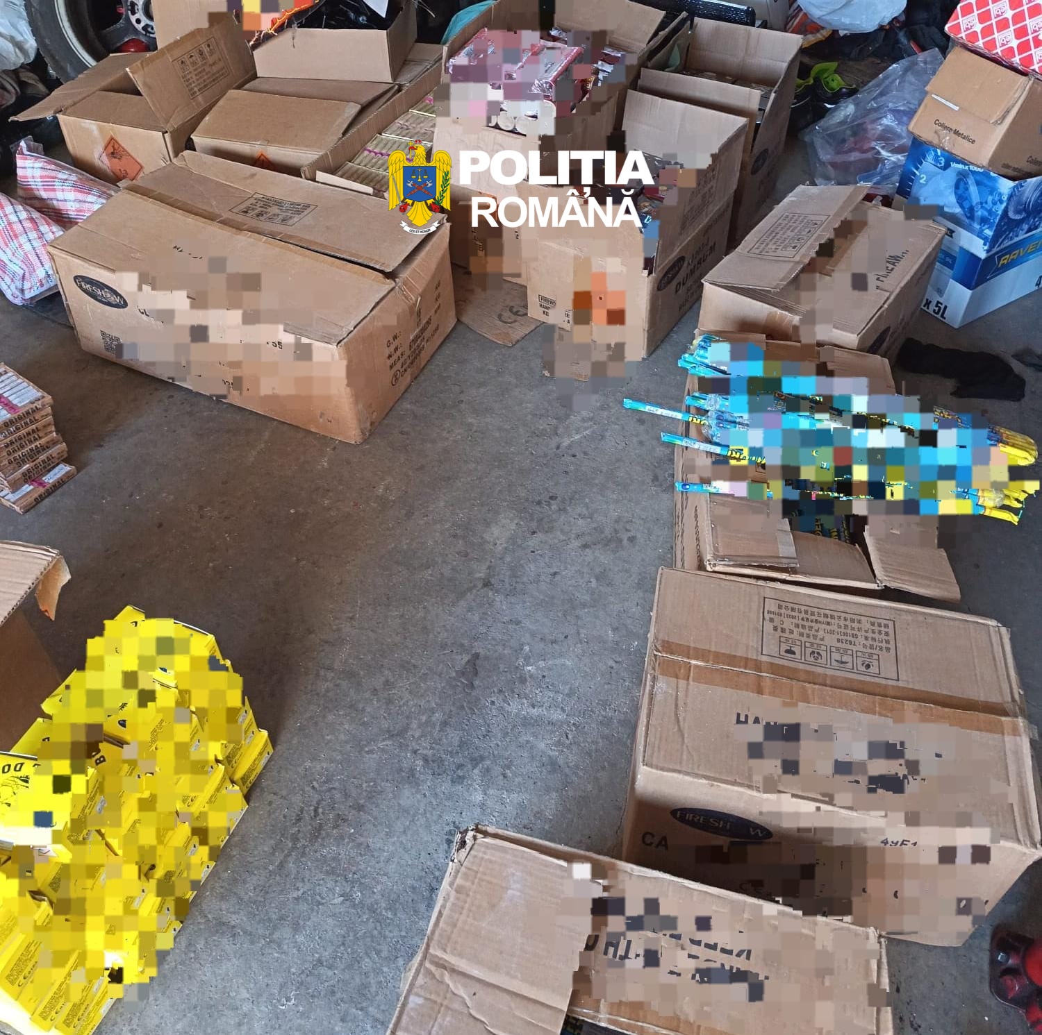 În urma perchezițiilor, polițiștii au ridicat cantități importante de produse din tutun, dar și peste 100.000 de articole pirotehnice – petarde, baterii de artificii, rachete sau alte materiale – deținute fără respectarea legislației privind regimul materiilor explozive.