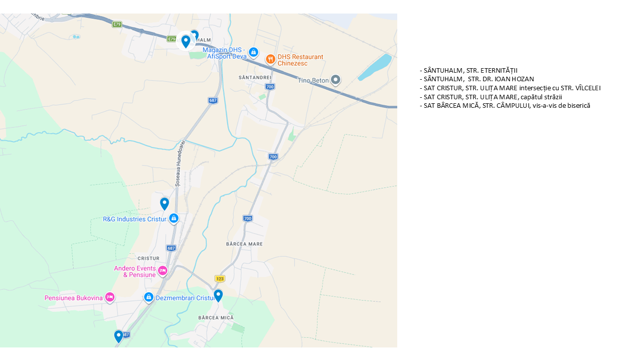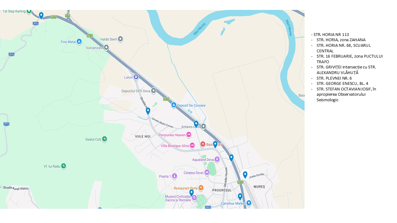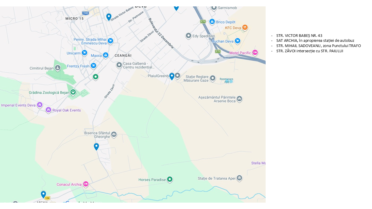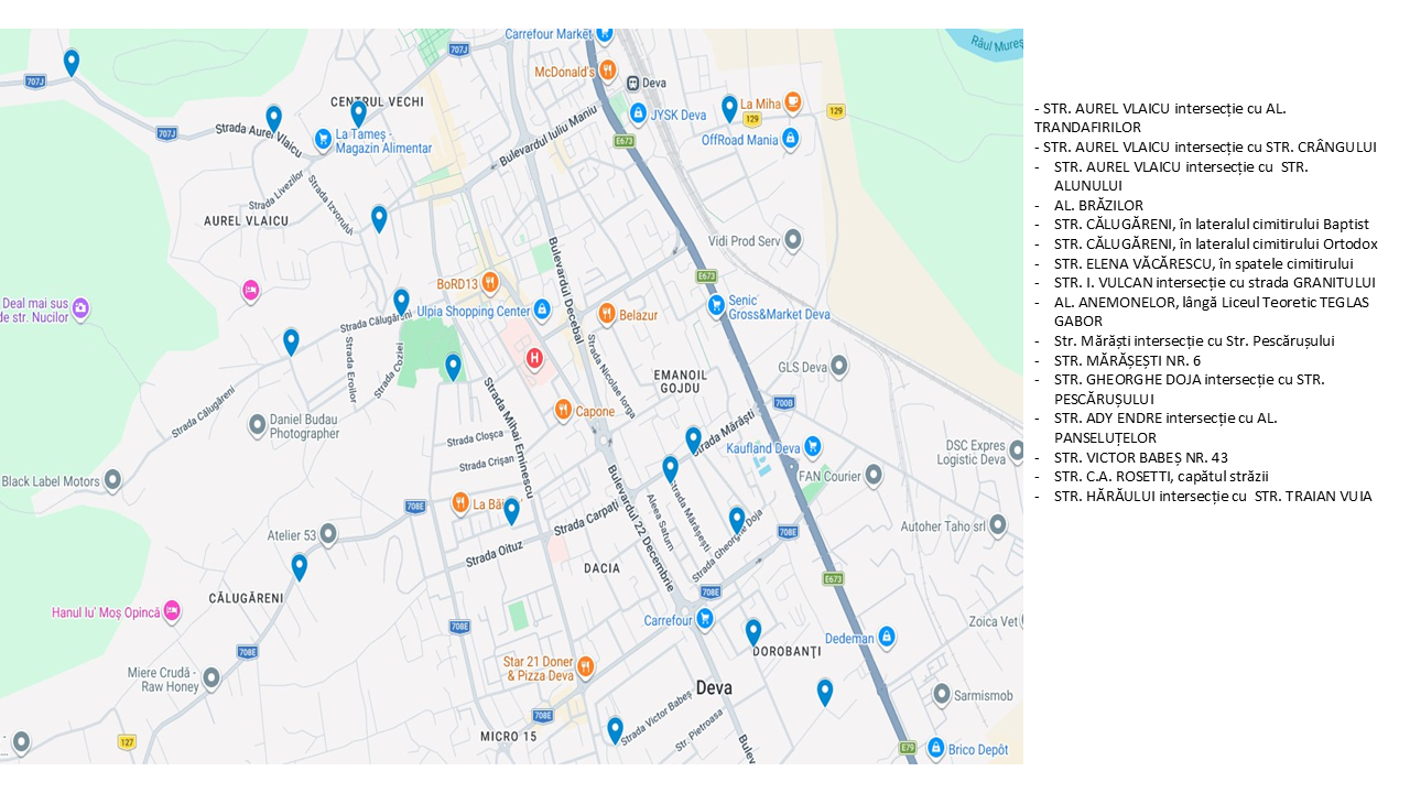 Pentru buna desfășurare a acestei acțiuni, pe raza municipiul Deva, localitățile aparținătoare și satele arondate vor fi amenajate 32 de puncte speciale de colectare, destinate exclusiv acestei campanii. Locațiile vor fi marcate și semnalizate cu panouri informative, astfel încât cetățenii să le poată identifica ușor.